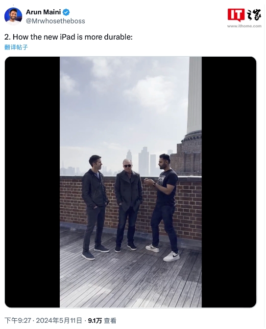 蘋(píng)果聲稱(chēng) 2024 款 iPad Pro 不易變彎,散熱金屬板可充當平板電腦“中央肋骨” 09:02:27