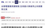 臺灣中央社27日消息聲稱(chēng),俄羅斯入侵烏克蘭,美國祭出制裁反制,包括臺積電在內的全球電腦芯片業(yè)者已開(kāi)始停止向俄羅斯出貨?! ∨_灣中