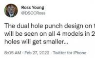 顯示器行業(yè)分析師Ross Young通過(guò)Twitter表示,iPhone Pro機型的雙打孔設計將在2023年的4款機型上全部出現?! 「鶕饲氨?,在iPho