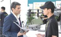 影翎Antigravity品牌宣傳海報展示標志性全景小行星畫(huà)面。 受訪(fǎng)者供圖 工作人員在第五屆消博會(huì )大疆展臺向參觀(guān)者介紹展品。