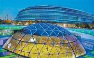 國家速滑館西南側的人形機器人賽訓基地熊貓眼燈光明亮,5V5足球比賽在此舉行。 吳 凡攝(人民視覺(jué)) 5V5足球比賽現場(chǎng),人形